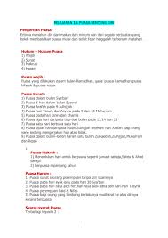 Puasa from static.coggle.it Hukum puasa pada hari tasyrik adalah haram karena umat islam masih dapat berkurban dalam perayaan idul adha. Berpuasa pada hari raya idul fitri (1 syawal). Berpuasa pada hari syak (yang meragukan). Disebabkan itulah ia digelar 'hari syak'. Jika seseorang berpuasa pada hari syak sesuai dengan kebiasaanya kemudian ternyata hari itu termasuk bulan ramadan, puasanya tidak dipandang sebagai puasa kesimpulannya, puasa yang dilakukan pada hari syak, hukumnya makruh menurut jumhur dan haram menurut mazhab syafi'i. Adalah haram berpuasa sunat pada hari syak iaitu pada 30 haribulan sya'ban yang tersebar berita di kalangan orang bahawa anak bulan ramadan telah dilihat, akan tetapi tidak disabitkan oleh hakim (pemerintah) kerana tidak dipersaksikan penglihatan anak bulan itu oleh seorang yang adil atau ianya. 'hari syak' adalah satu hari yang dilarang berpuasa padanya. Berpuasa pada hari raya idul adha (10 zulhijjah).