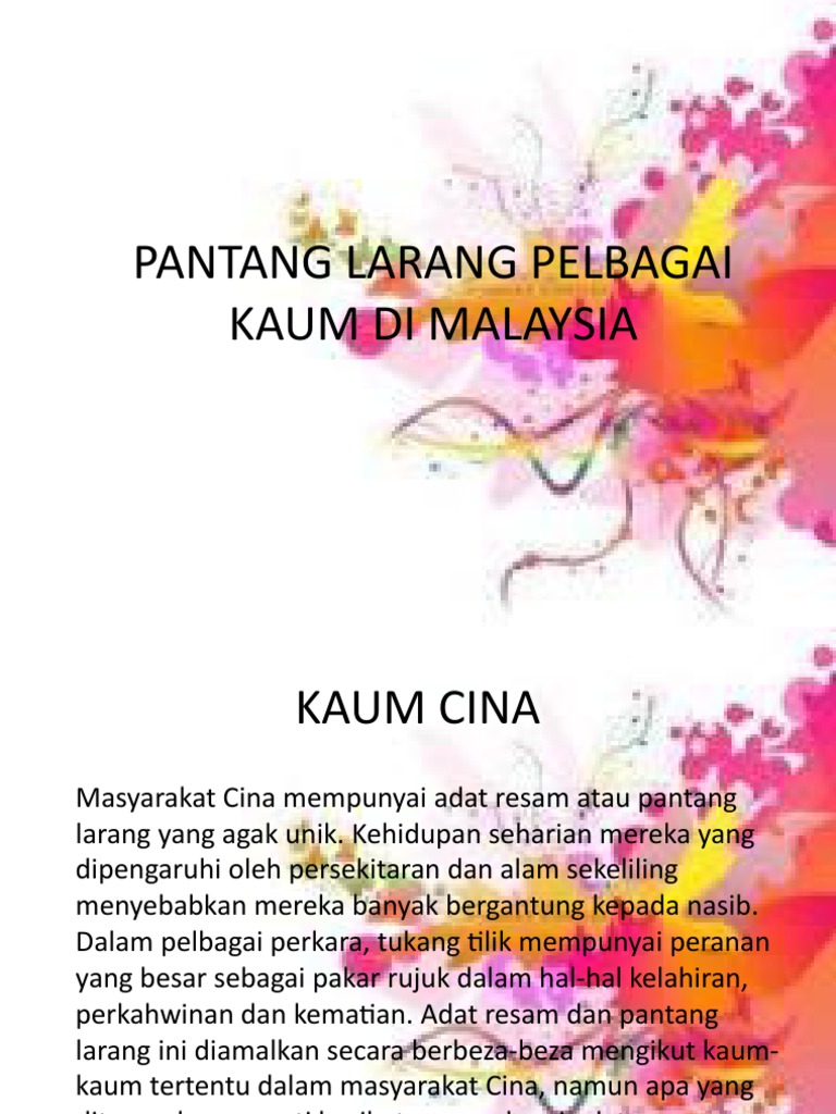 Pantang Larang Ibu Selepas Bersalin Dilanggar, Wanita Ini ... from tap-assets-prod.dexecure.net Bincang dalam kumpulan kecil tentang pantang larang pelbagai kaum di malaysia. Pantang larang atau tabu merupakan larangan keras terhadap suatu tindakan berdasarkan kepercayaan bahawa tindakan sedemikian terlalu suci atau terlalu melanggar pantang larang itu lazimnya dikecam oleh masyarakat pada umumnya, tidak sekadar sebahagian dalam budaya. B) sehari sebelum majlis perkahwinan diadakan bakal pengantin tidak dibenarkan keluar daripada rumah. There are a lot of 'pantang larang' (taboos) that surround us especially because we have different races in our community. This application displays taboos or tips for the elderly in the past. We have been scared from various kind of taboos from our ancestors. Pantang larang atau tabu (bahasa inggeris: Google's free service instantly translates words, phrases, and web pages between english and over 100 other languages.